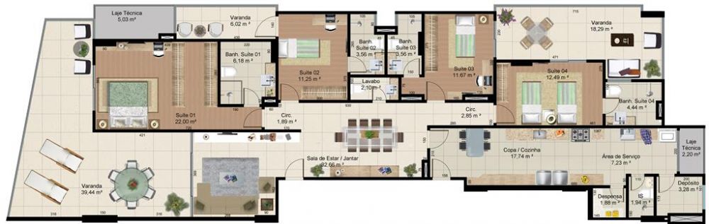 04 SUÍTES DE ALTO PADRÃO DE FRENTE PARA O MAR DA PRAIA DA COSTA. UNIDADE COM 238 M2 PRIVATIVOS. LAZER ENTREGUE MONTADO E DECORADO.