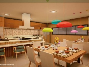 2 Quartos c/ 1 suíte, Sala, Varanda, WC Social, Cozinha e Área de Serviço (1 vaga)