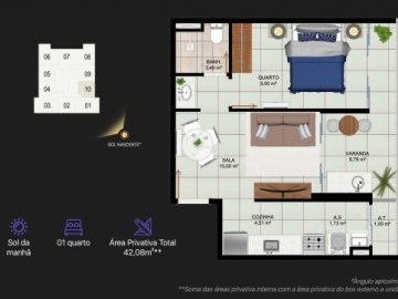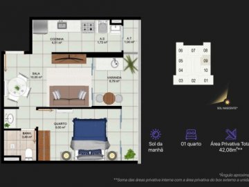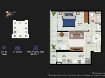 01 quarto > até 42 m2 (UNIDADE PODENDO SER MODIFICADA PARA 02 QUARTOS)