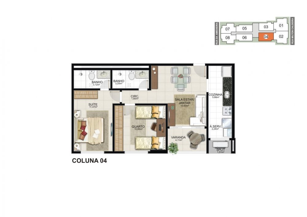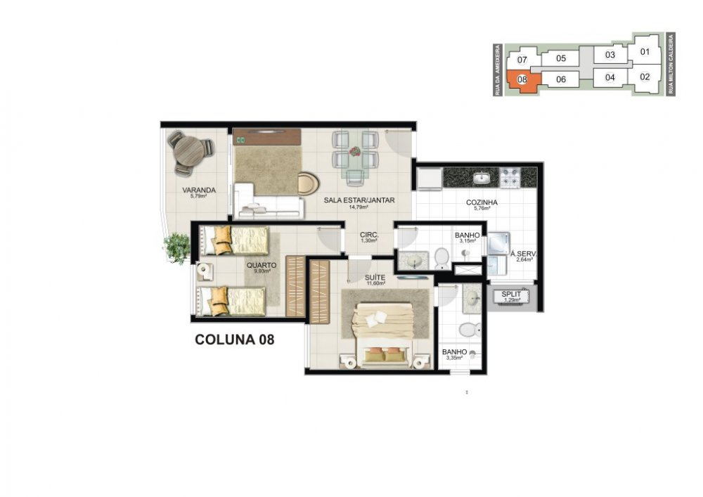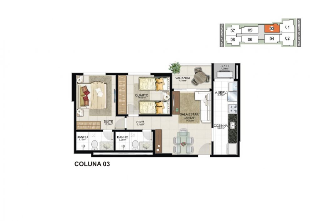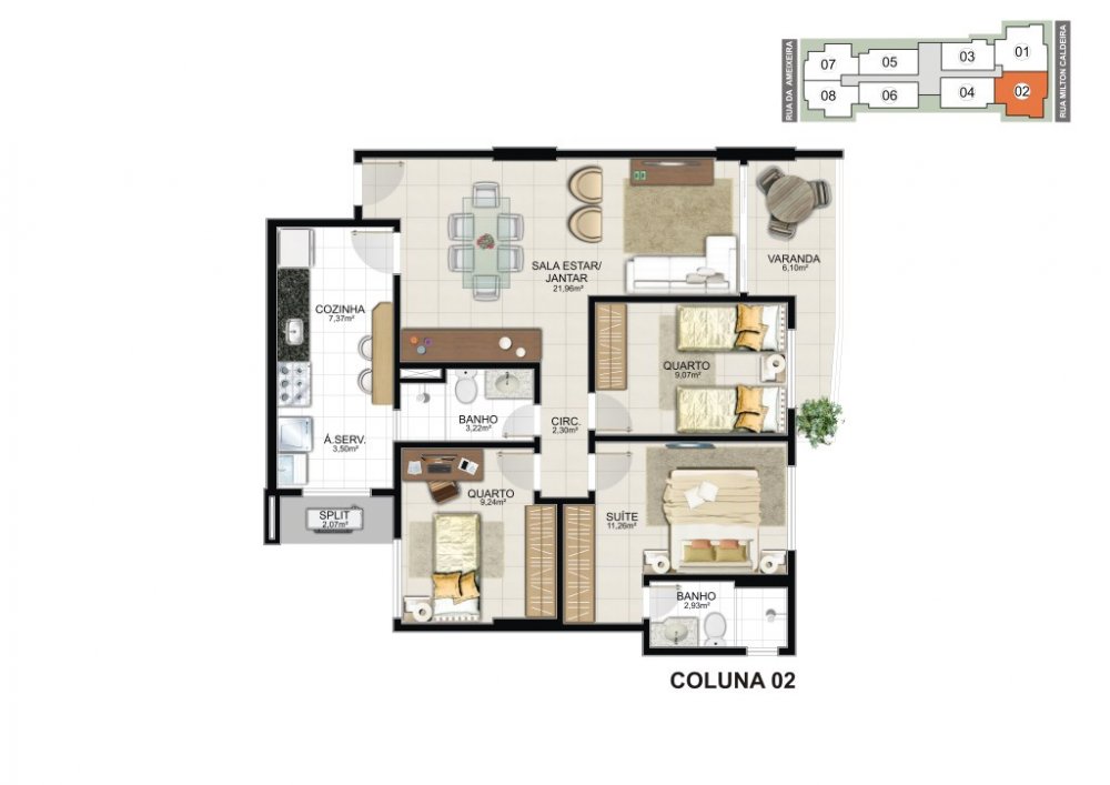 * 03 quartos com 87,23 m2 (02 vagas de garagem).
