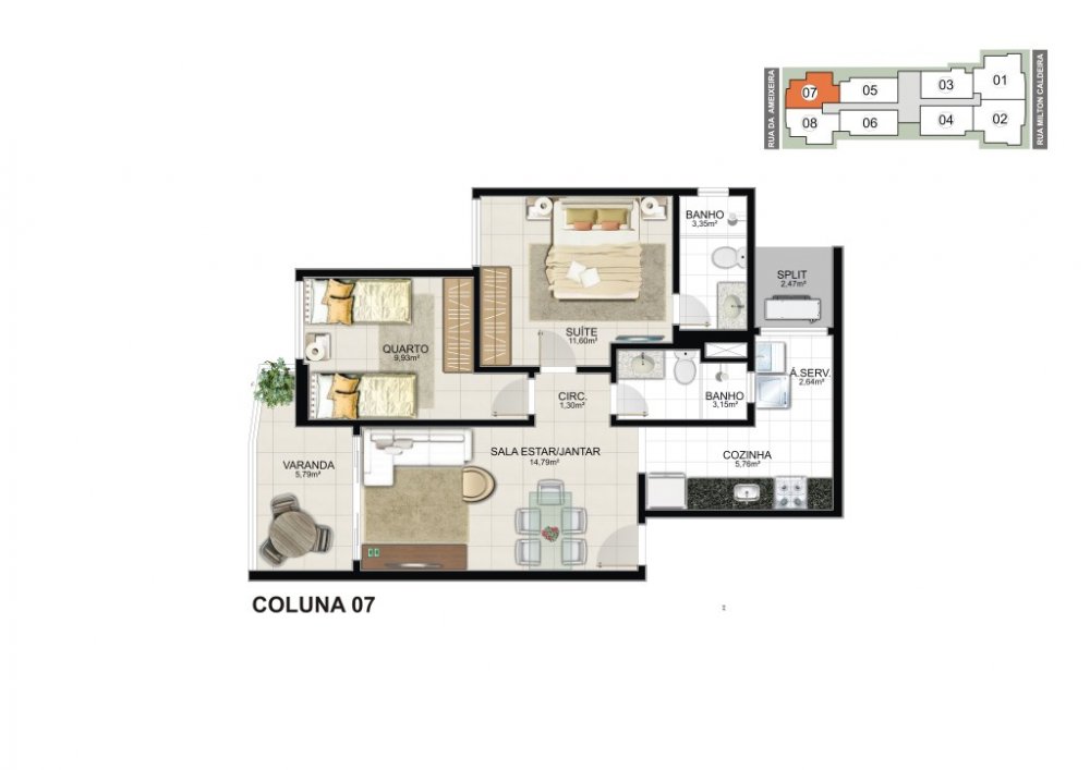 - Colunas: 3 e 4 = 61,05m2