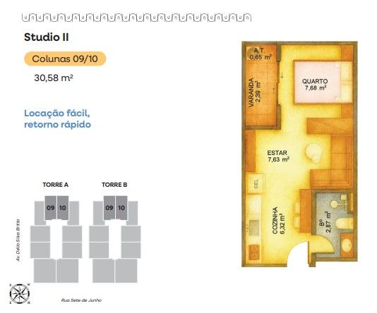 - Área Privativa: 30,58 m²