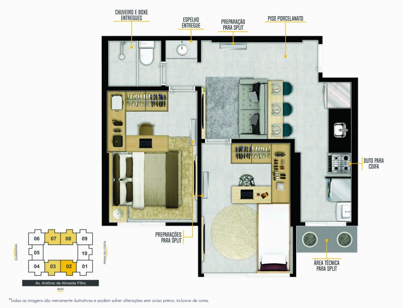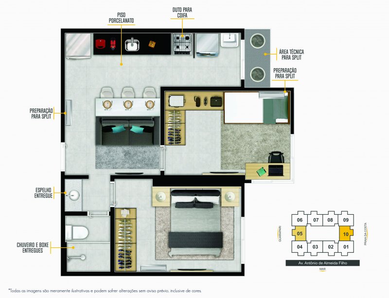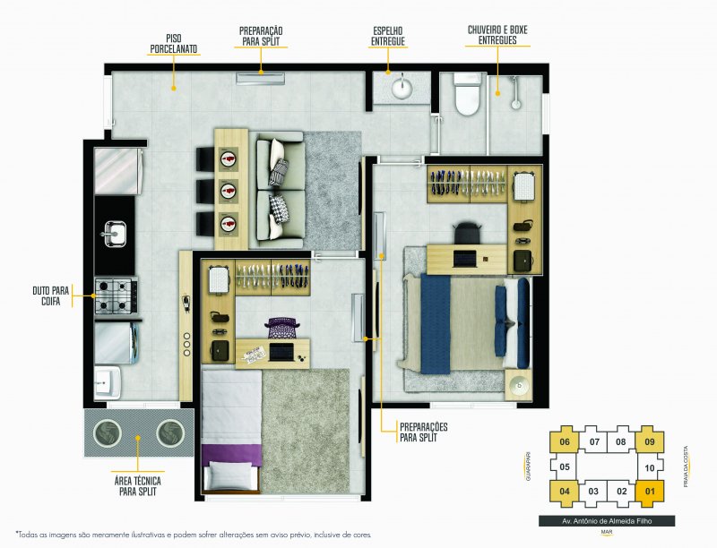 - Preparação para ar-condicionado tipo split nos quartos e sala