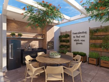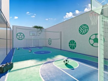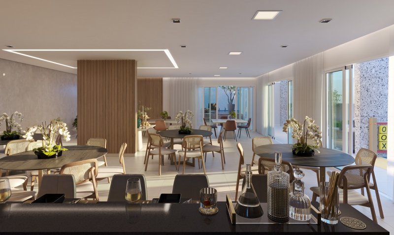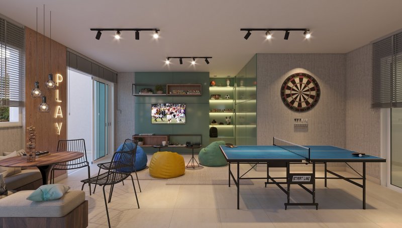 Piscina adulto - Deck molhado com cascata -Piscina infantil - Solarium - Sauna integrada à piscina - Cantinho da família - Playground - Espaço grill - Horta - Quadra recreativa - Espaço pizza & grill - Game room - Espaço kids - Salão de festas - Fitness - Coworking - Lavanderia;
