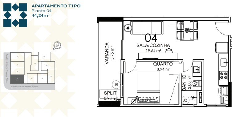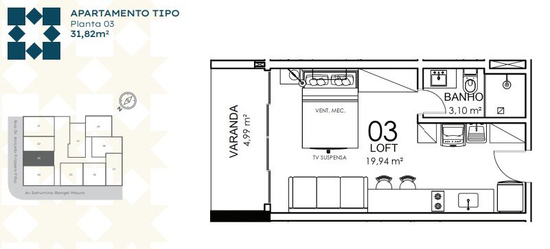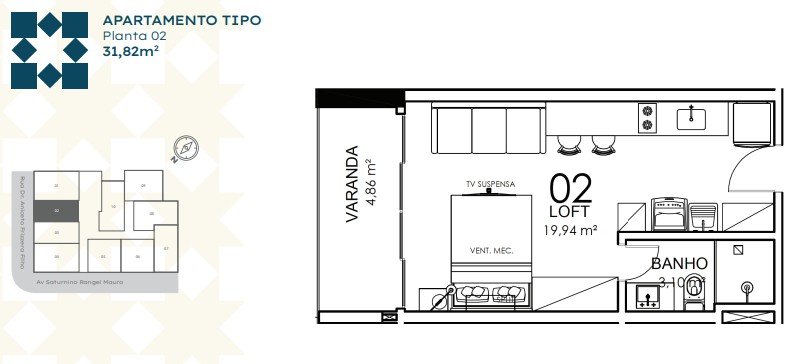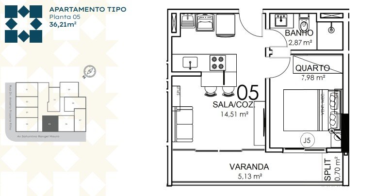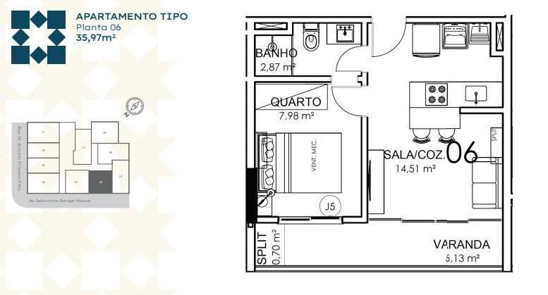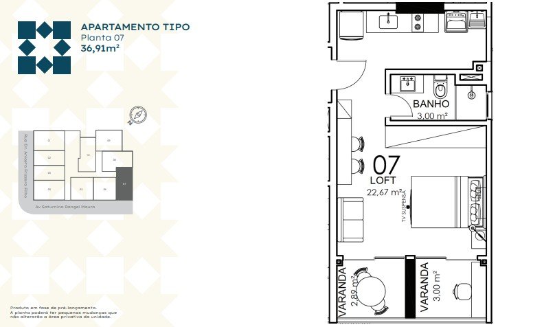- Área Privativa: 36,91 m²