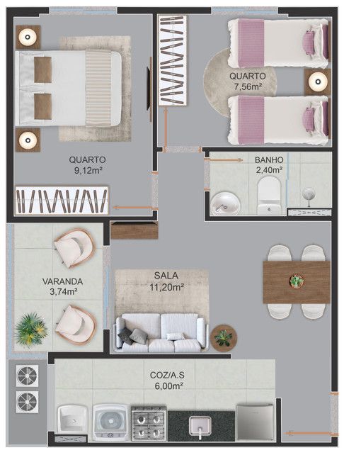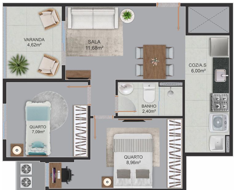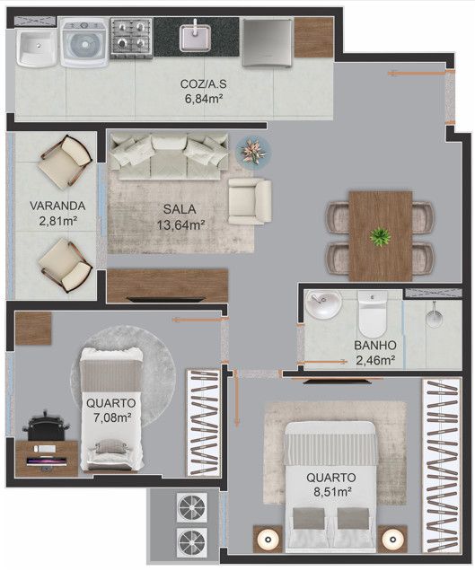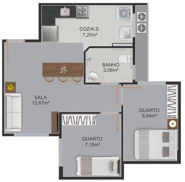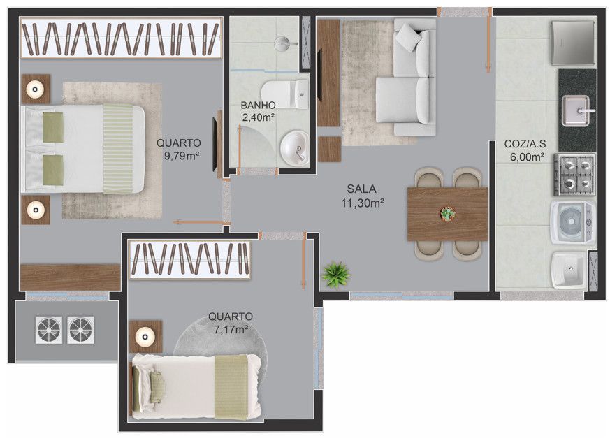 - Área Privativa: 43,93 m²