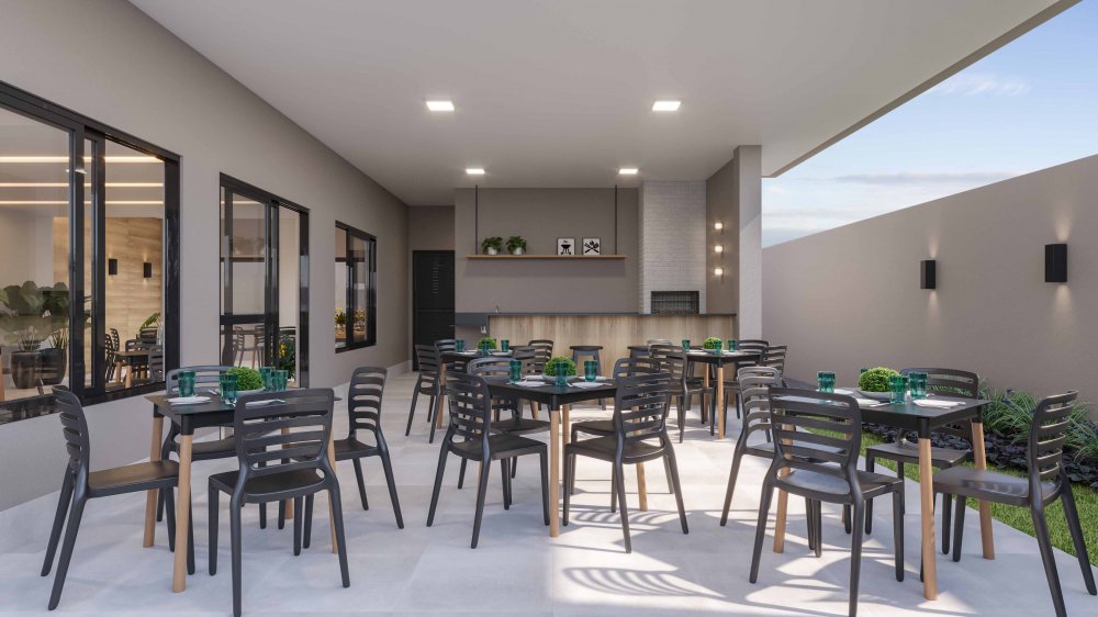 SALÃO DE FESTAS ABERTO COM CHURRASQUEIRA - COZINHA E APOIO - WC MASCULINO - WC FEMININO E
