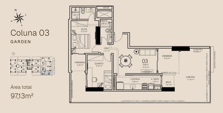 APTO 03 - 63,66 m² / APTO 03 GARDEN - 97,13m²