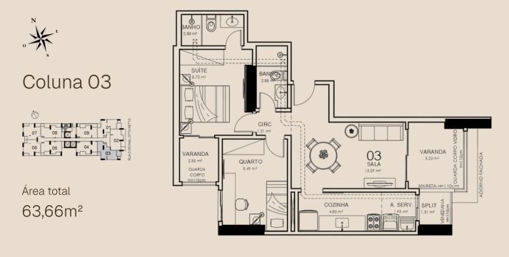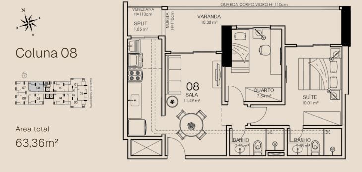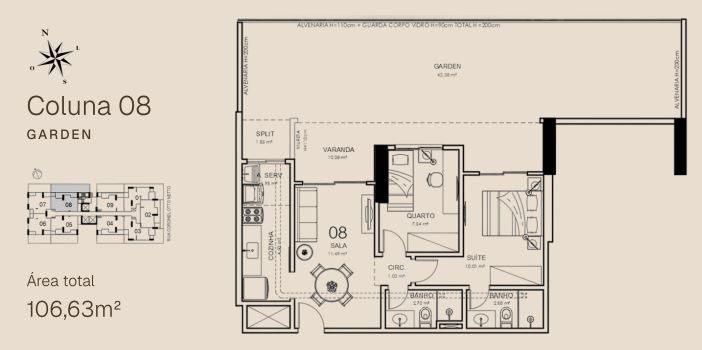 APTO 08 - 63,36 m² / APTO 08 GARDEN - 106,63m²