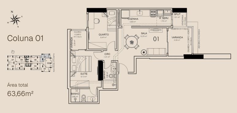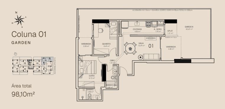 APTO 01 - 63,66 m² / APTO 01 GARDEN - 98,10m²