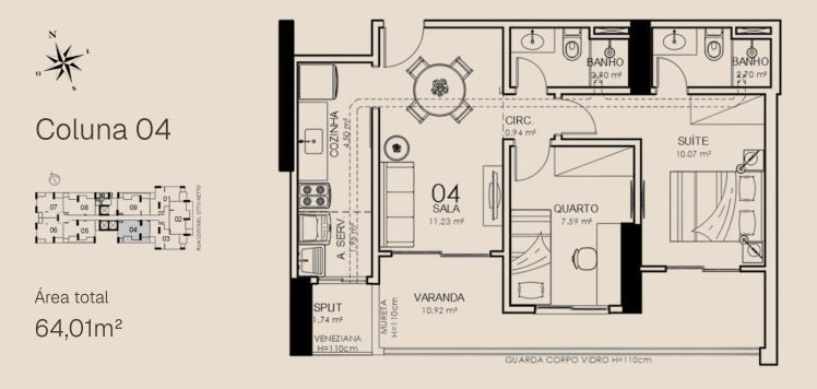 APTO 04 - 64,01 m² / APTO 04 GARDEN - 94,17m²