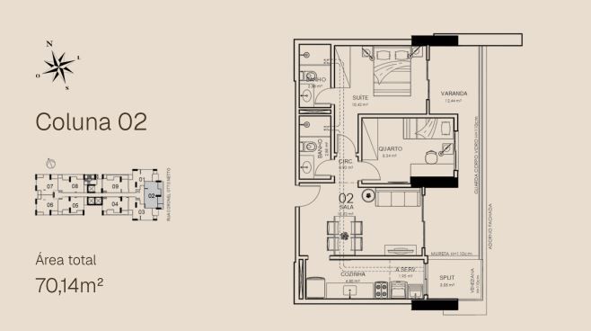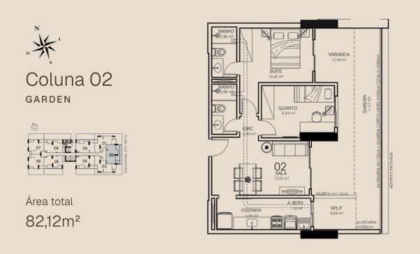 APTO 02 - 70,14 m² / APTO 02 GARDEN - 82,12m²