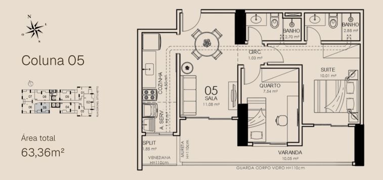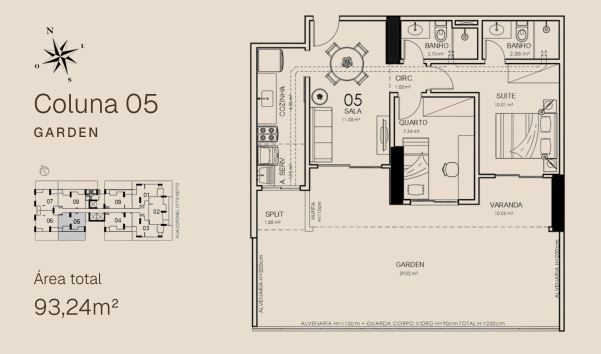 APTO 05 - 63,36 m² / APTO 05 GARDEN - 93,24m²