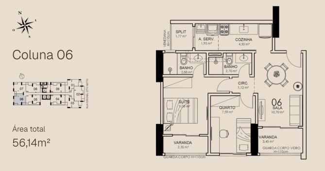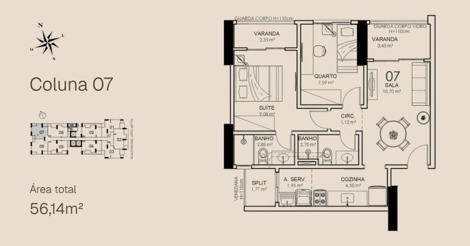 - Área Privativa: 56,14 m²