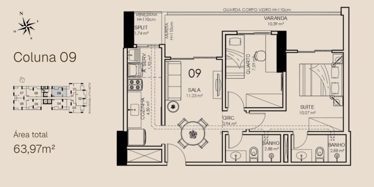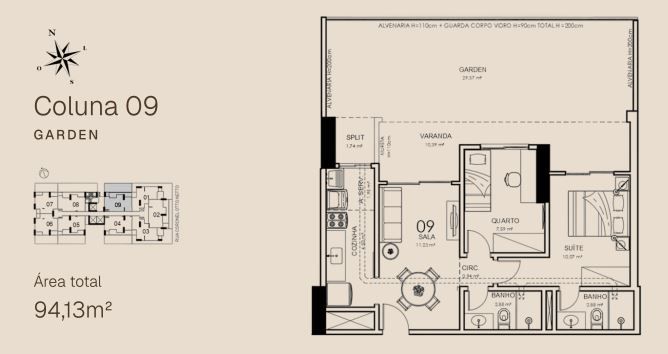 APTO 09 - 63,97 m² / APTO 09 GARDEN - 94,13m²