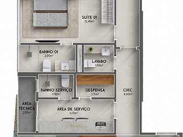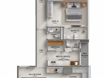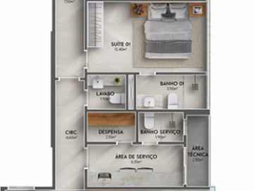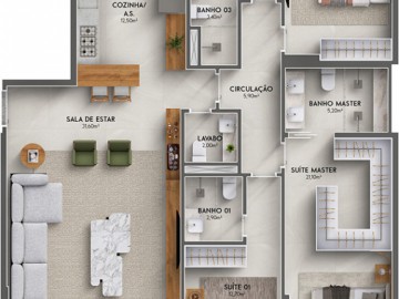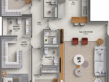 Apartamemtos que vão de 175,42m2 a 200,51m2.