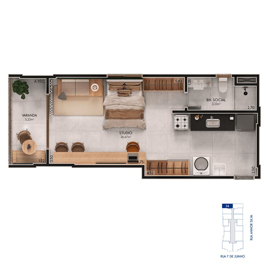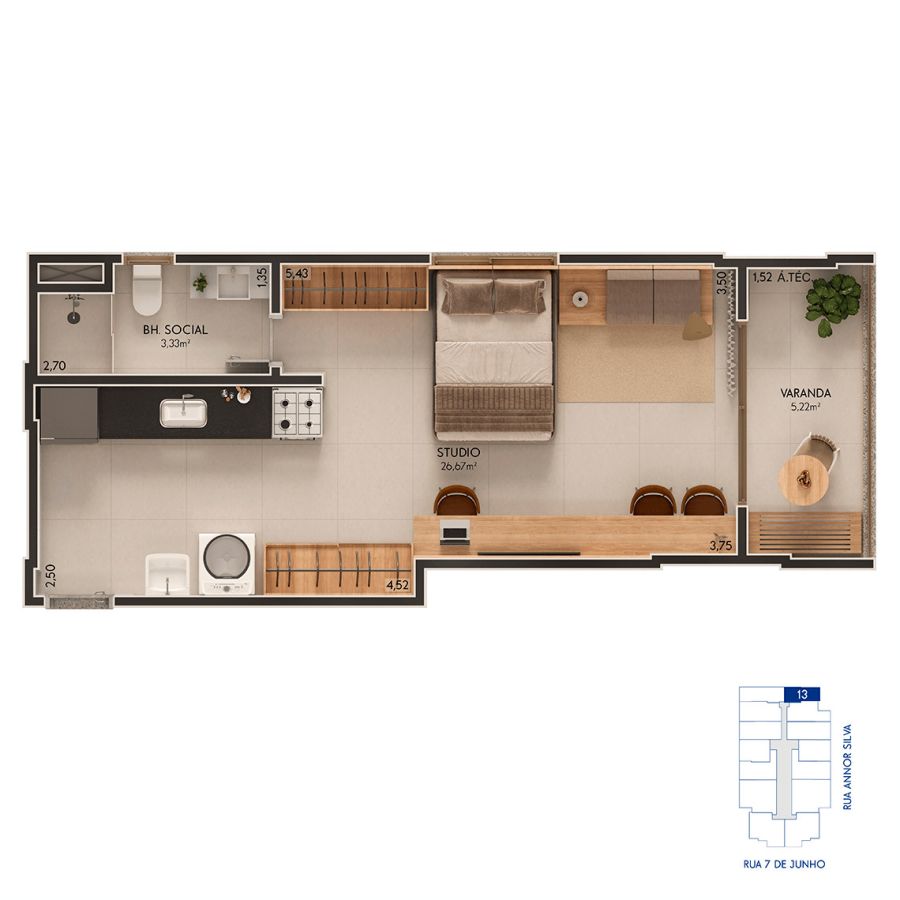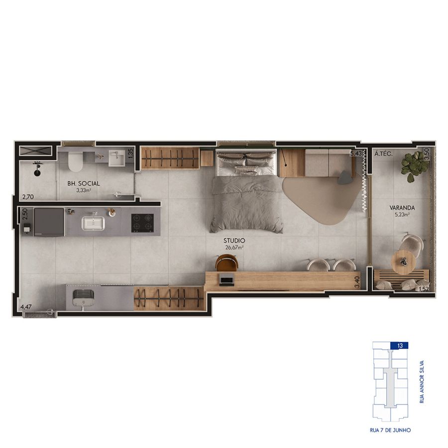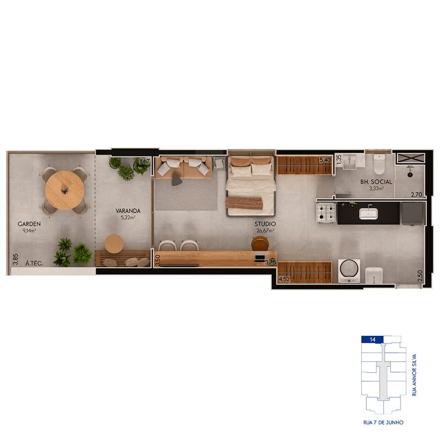 * STUDIOS - 40,22 m² (Colunas 13 e 14) = 48 unidades