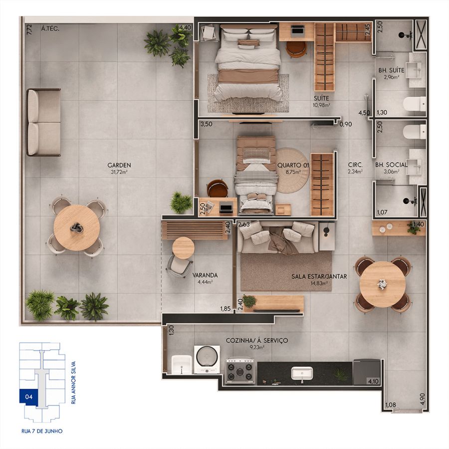 Com lojas comerciais, acesso exclusivo à área residencial, lazer completo e decorado, além de um