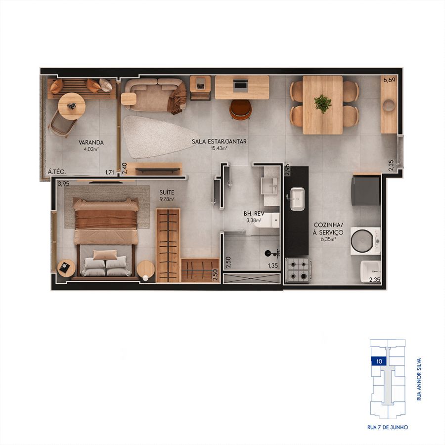 - Área Privativa: 40,22 m²