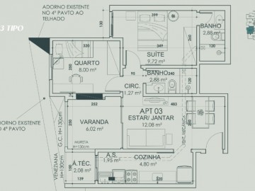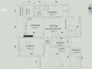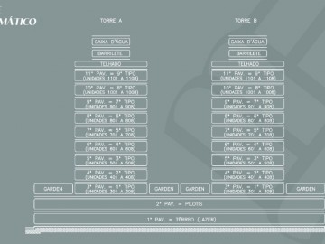 -->8 Pavimentos tipo + 1 pavimento gardens, com 8 apartamentos por andar.