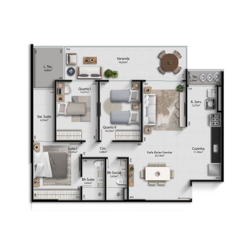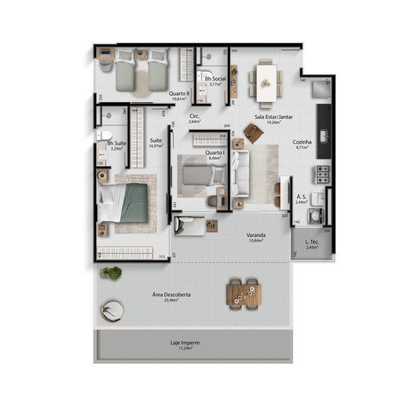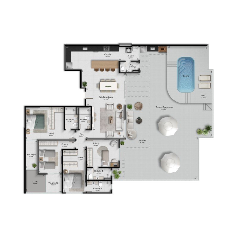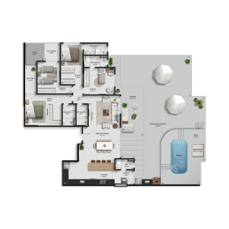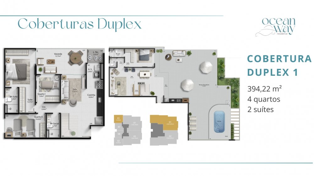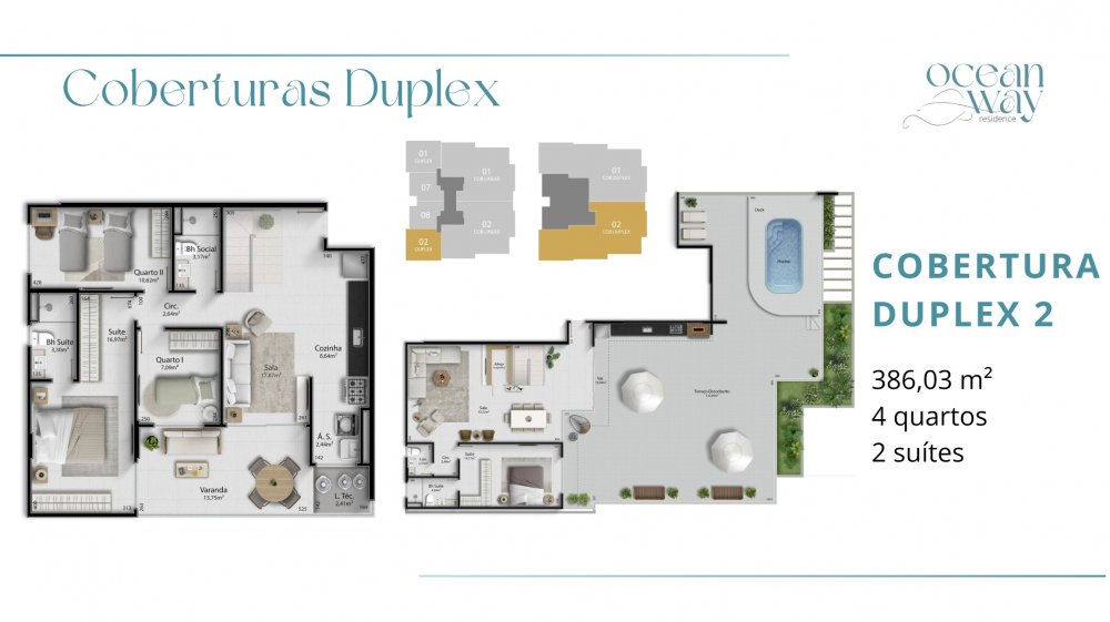 Equilíbrio perfeito em um 02, 03 ou 04 quartos com coberturas linear e duplex.
