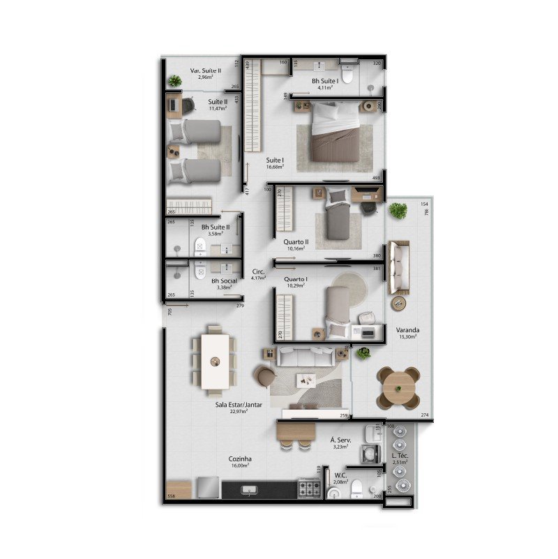 - Área Total: 124,38 m² (R$ 13.707/m²)