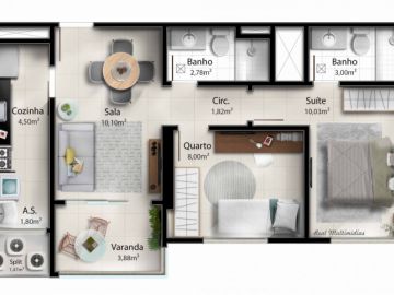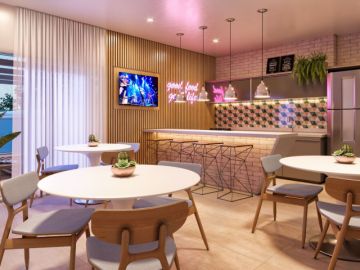 Imagens meramente ilustrativas. Área de lazer e portaria entregue montada e decorada conforme memorial descritivo do empreendimento. Split: infraestrutura 100% executada, entregue a linha frigorígena, o dreno e a parte elétrica.