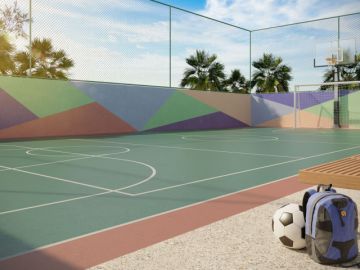 Piscina Adulto, Piscina Infantil, Deck, Sauna (com acesso à piscina adulto), Duchas, Banheiro Feminino, (PNE), Banheiro Masculino (PNE), Praça Poente, Churrasqueira 01, Praça das Mães, Praça da Música, Play ground, Salão de Festas, Churrasqueira 02, Praça Esportes, Quadra Esportiva, Fitness, Espaço Gourmet, Praça Gourmet, Circulação (coberta).