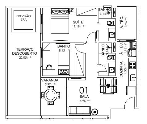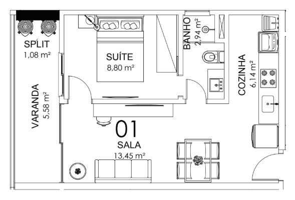 APARTAMENTO TIPO 01 - 43,70m²