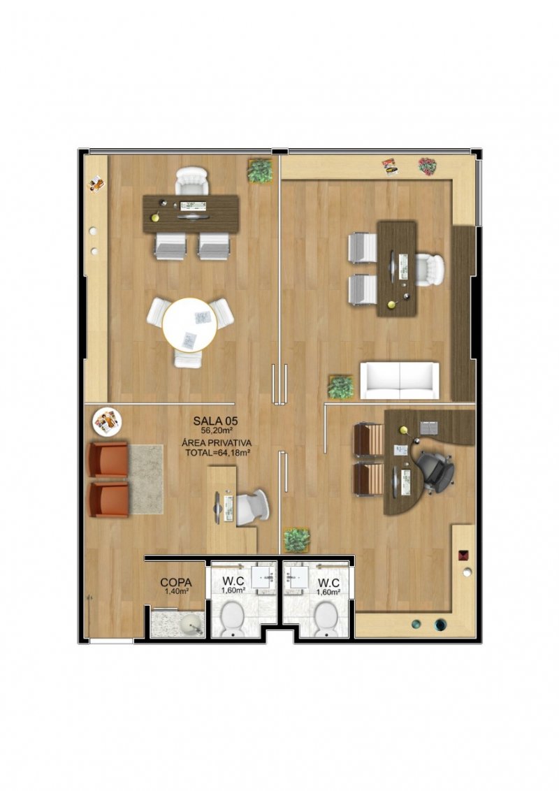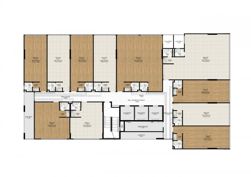 - Área Privativa das Salas: 30,00m² a 68,42m²