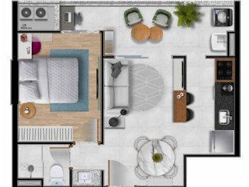 - 02 quartos com 42,40 m2 privativos (o segundo ambiente é multiuso e possui área menor, o que comporta layout de quarto ou escritório)