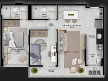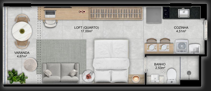 Apartamento Studio Loft: 06 unidades (42,66m até 47,93m );