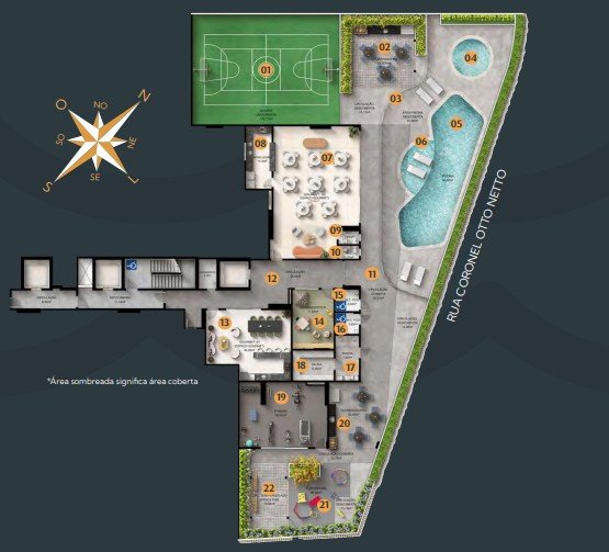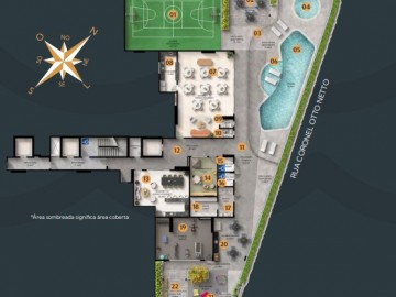 -Metragem área de lazer: 883,60m²(sendo 448,79m² cobertos e 434,81m² descobertos)