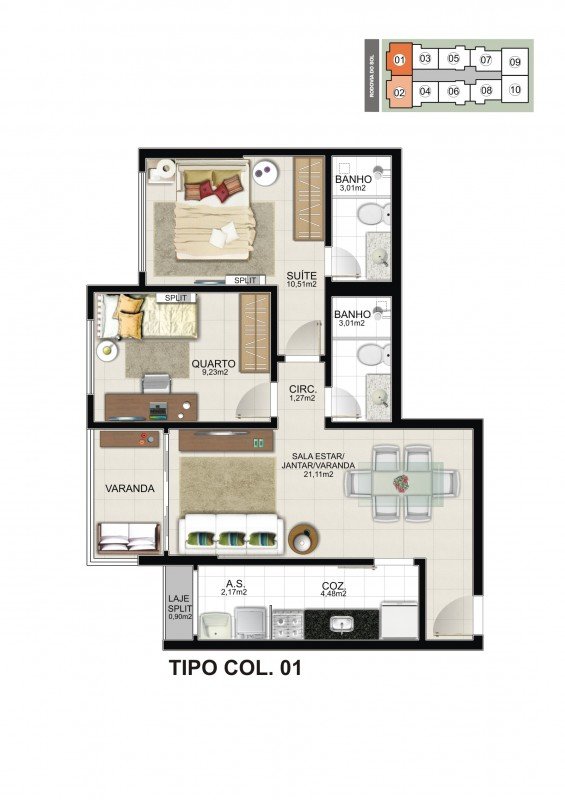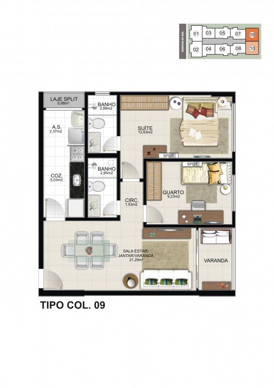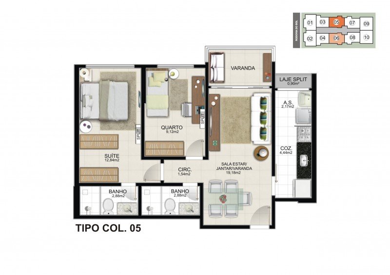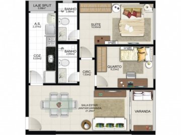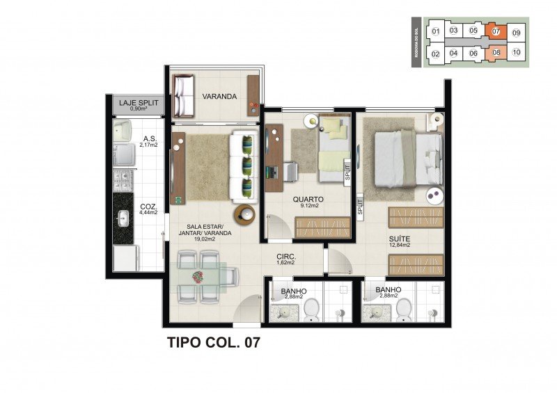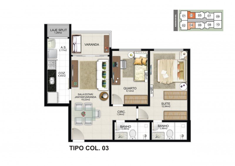 - Empreendimento de 02 quartos sendo 01 suíte;