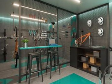Itens Espaços Funcionais e Compartilhados: bike point, bike repair, bike sharing, lounge café, meu locker, espaço concierge, coworking, sala de reunião, mini mercado, lavanderia, estúdio podcast / vídeocast e biblioteca.