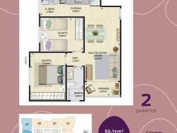Mais DetalhesDormitórios2 Suítes1 Banheiros1 Garagens1