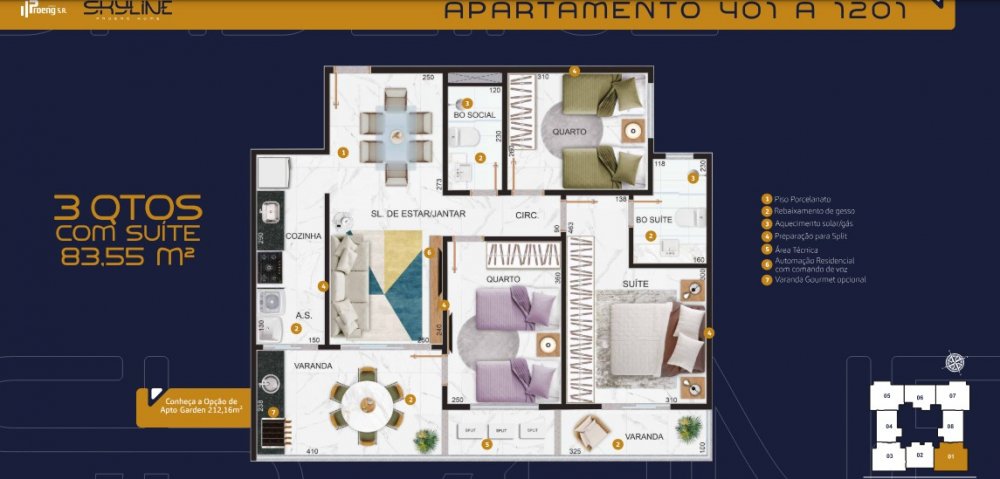 Coluna 01 - 3qtos com suíte 83,55 m²