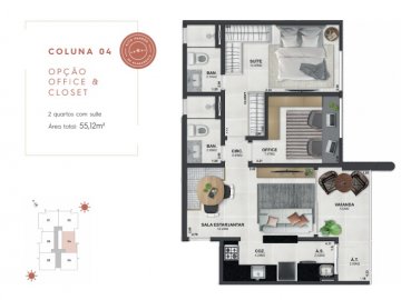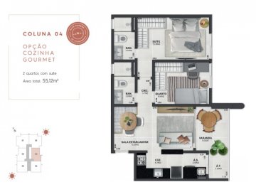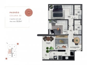 Colunas: 03 e 04: 02 quartos com 01 vaga de garagem - com 55,12 m2 privativos