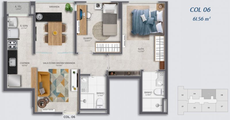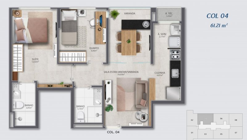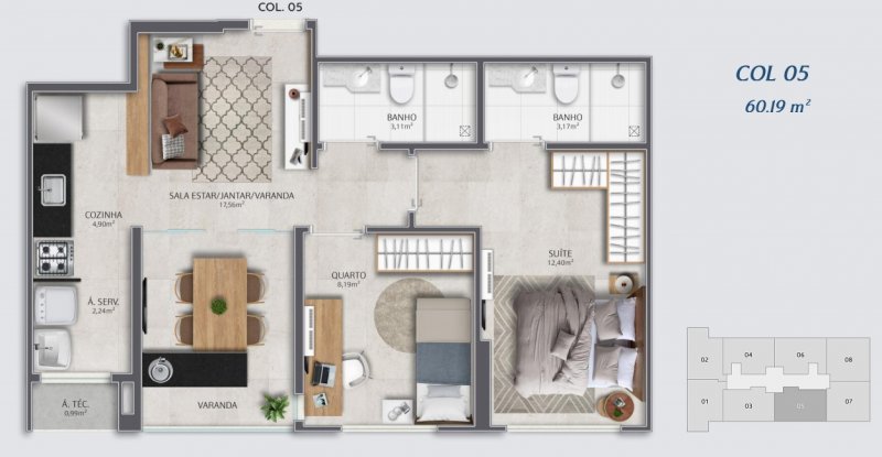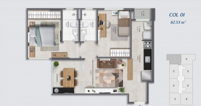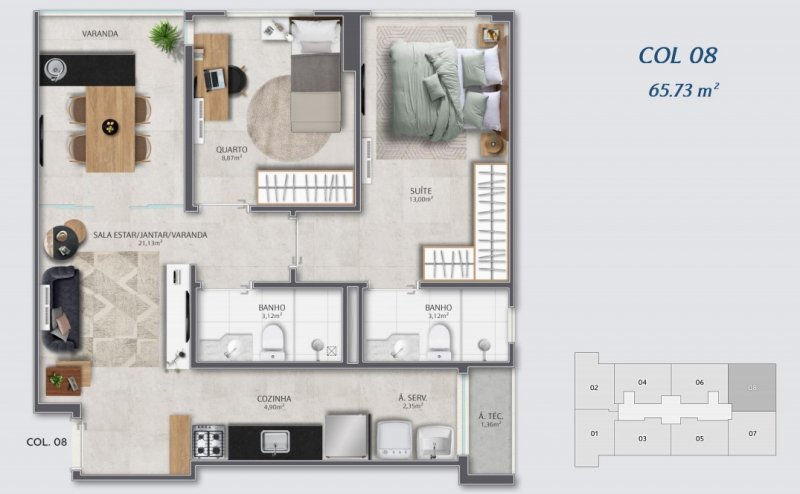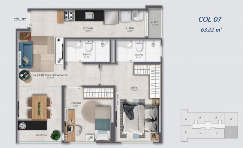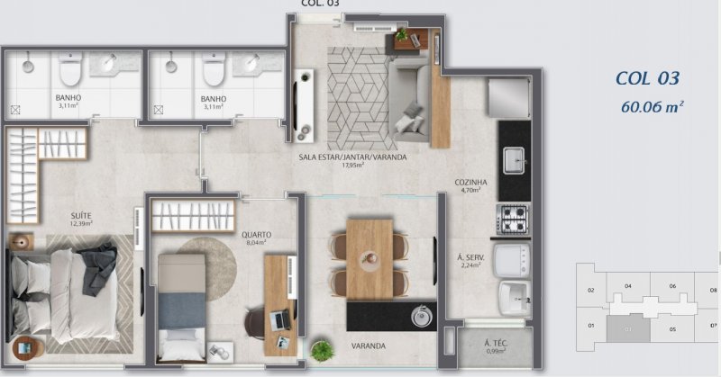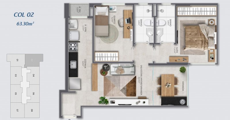 - Unidades de 60,06 a 65,73 m2 privativos.