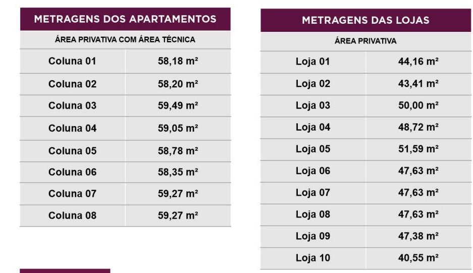 Centro comercial no térreo com 10 amplas lojas. Ainda mais conveniência e praticidade para você.