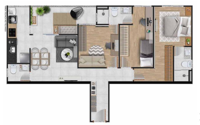 - Piso laminado nos quartos