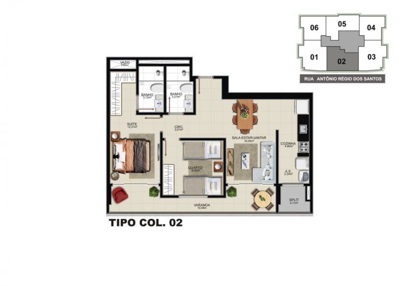 - Área Privativa: 85,70 m²