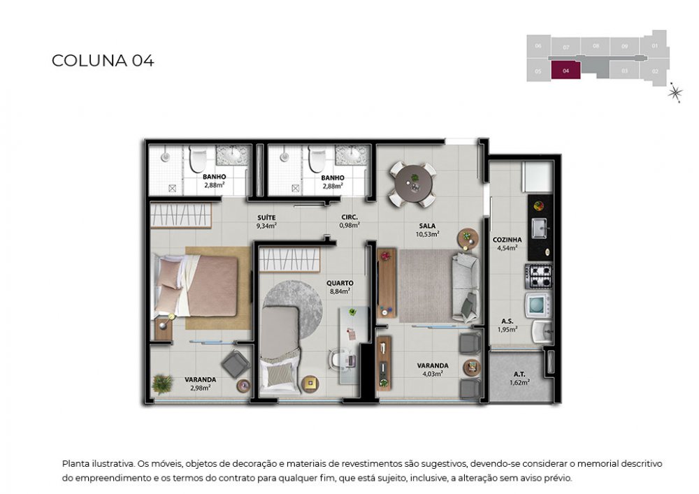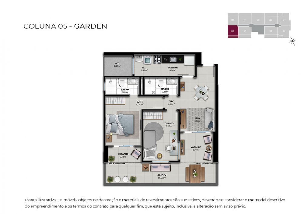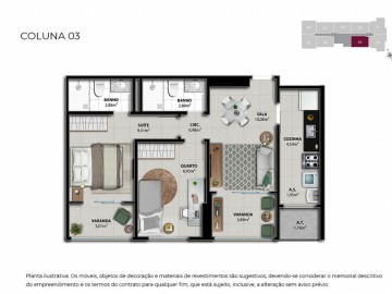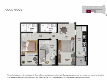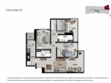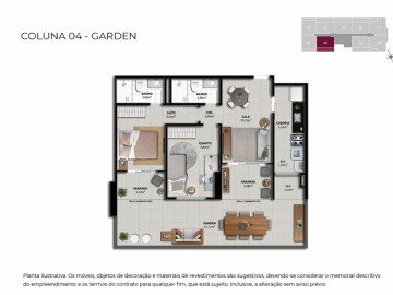 Unidades de 02 quartos com até 58,51 m2 - contemplando 01 vaga na garagem;