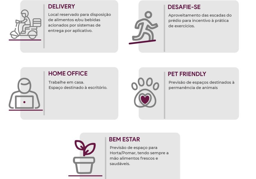 Lazer entregue montado e decorado sem custo adicional! Bicicletário, Espaço Delivery, Espaco PET, Horta, Pomar no térreo Estrutura de passagem de carros, trazendo segurança e conforto a moradores e visitantes.