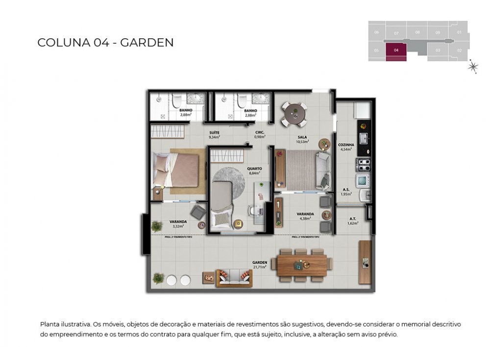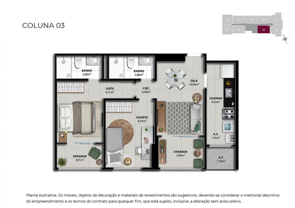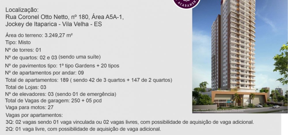 Unidades de 03 quartos com 76,54 m2 - contemplando 02 vagas na garagem.