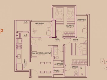 Tamanho privativos: de 56,25 a 67,66 m2