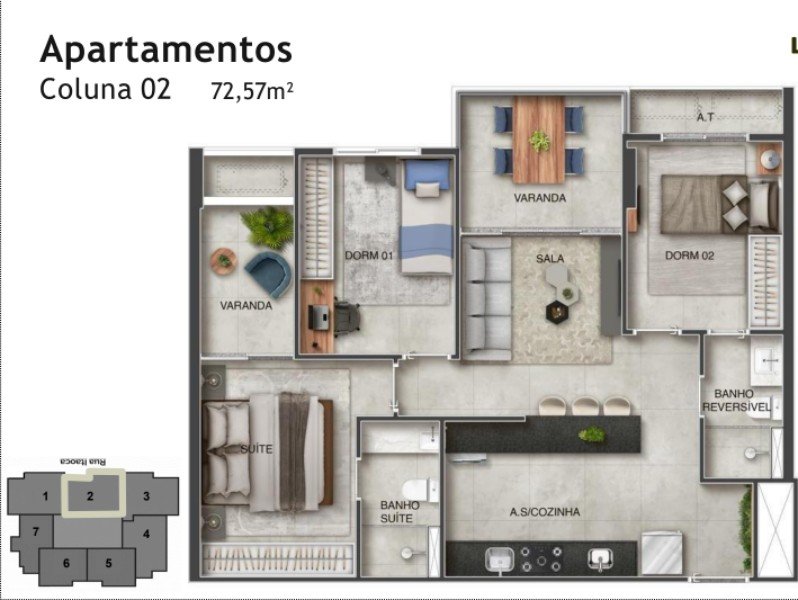 - COLUNA 02 - 03 QUARTOS COM 72,57 M2