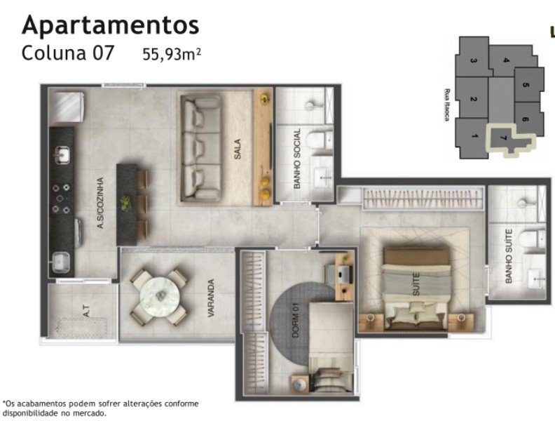 - COLUNA 07 - 02 QUARTOS COM 55,93 M2