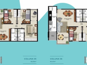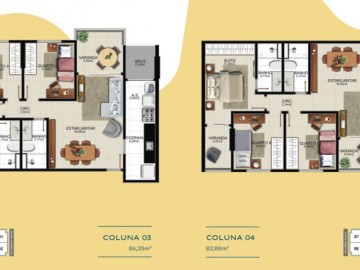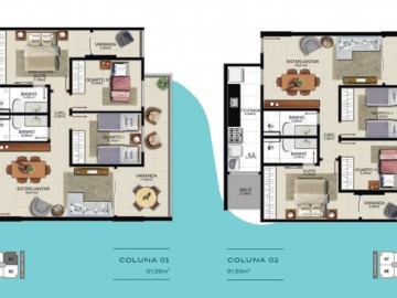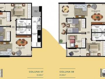 03 quartos c/ suíte e 02 vagas de garagem. Plantas de 82,59m² a 91,89m² de área privativa.
