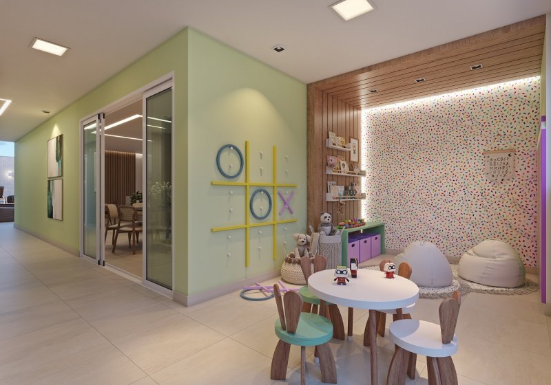 Piscina adulto - Deck molhado com cascata -Piscina infantil - Solarium - Sauna integrada à piscina - Cantinho da família - Playground - Espaço grill - Horta - Quadra recreativa - Espaço pizza & grill - Game room - Espaço kids - Salão de festas - Fitness - Coworking - Lavanderia;